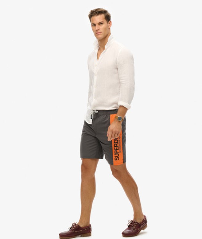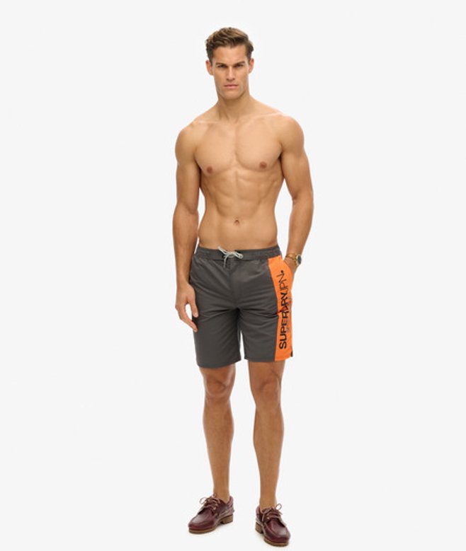 Superdry Gerecyclede Sportswear Boardshort met Logo - 48 cm Donkergrijs
