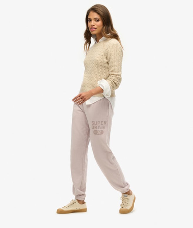 Superdry Athletic Essentials Joggingbroek met Verweerde Vintage Print Lichtgrijs