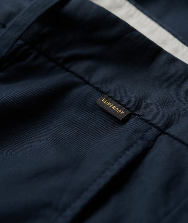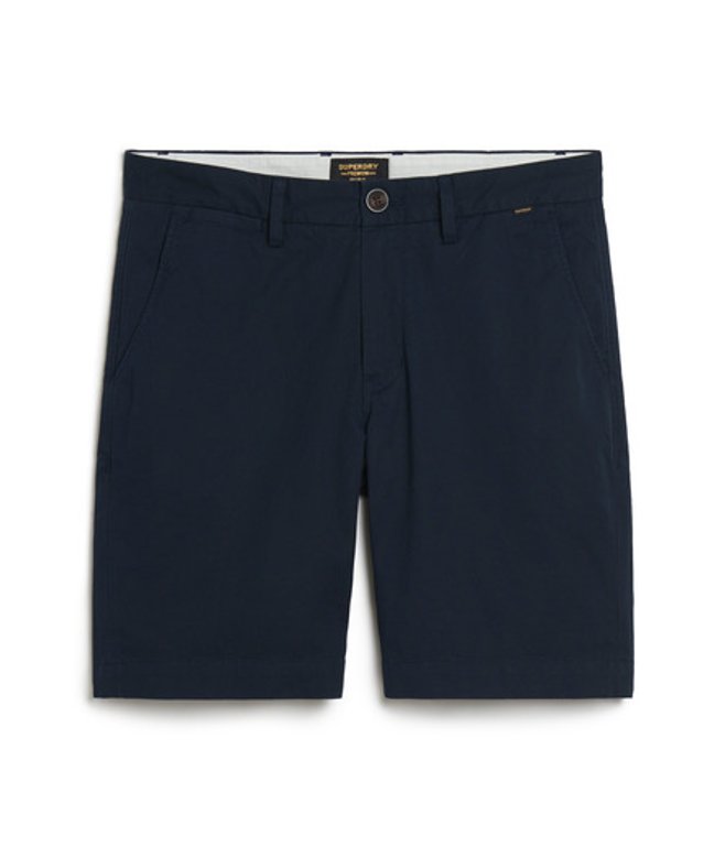 Gecombineerd met ons biologisch katoenen T-shirt zag een eenvoudige short er nog nooit zo goed uit! Slimfit - de nauw aansluitende pasvorm zorgt voor een getailleerd silhouet Rits- en knoopsluiting Riemlussen Twee zijzakken Muntzakje Twee achterzakken met knopen Kenmerkende Superdry-badge