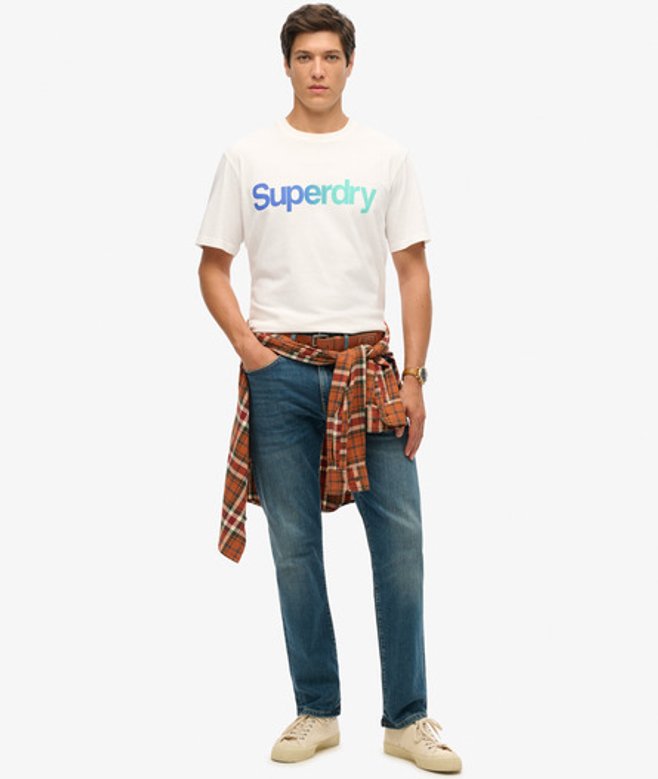 Losse pasvorm - cool en comfortabel komen samen in een stijlvolle losse pasvorm die je gewoon moet hebben Geribde ronde hals Korte mouwen Vervaagd rubberen logo Kenmerkend Superdry-label