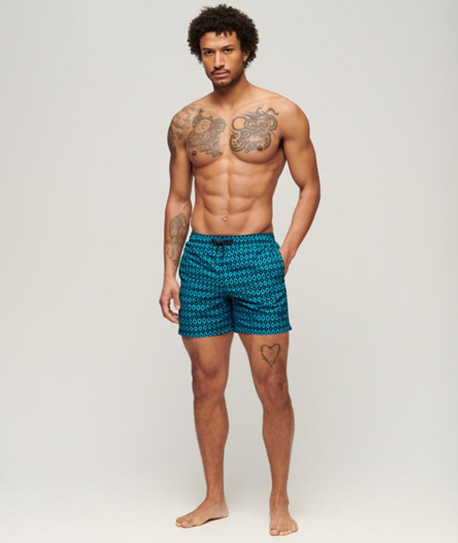 Superdry Gerecyclede Zwemshort met Print - 38 cm Blauw