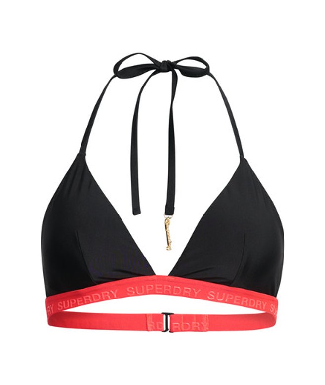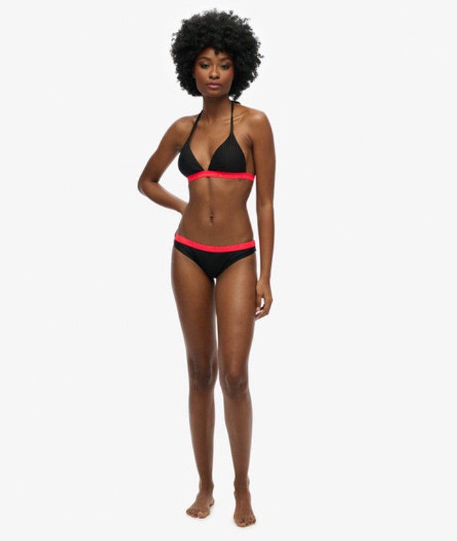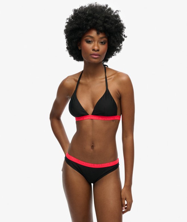 Creëer een minimalistische, sportieve look voor op het strand of bij het zwembad met de elastische triangelbikinitop.