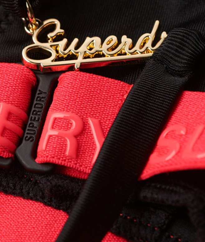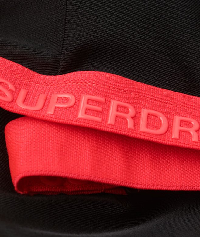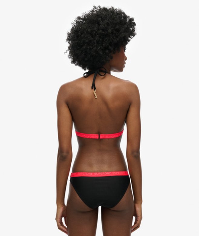 Aansluitend: een nauw op het lichaam aansluitende pasvorm Halterbandjes met striksluiting Uitneembare gewatteerde cups Elastische tailleband met merkdetails