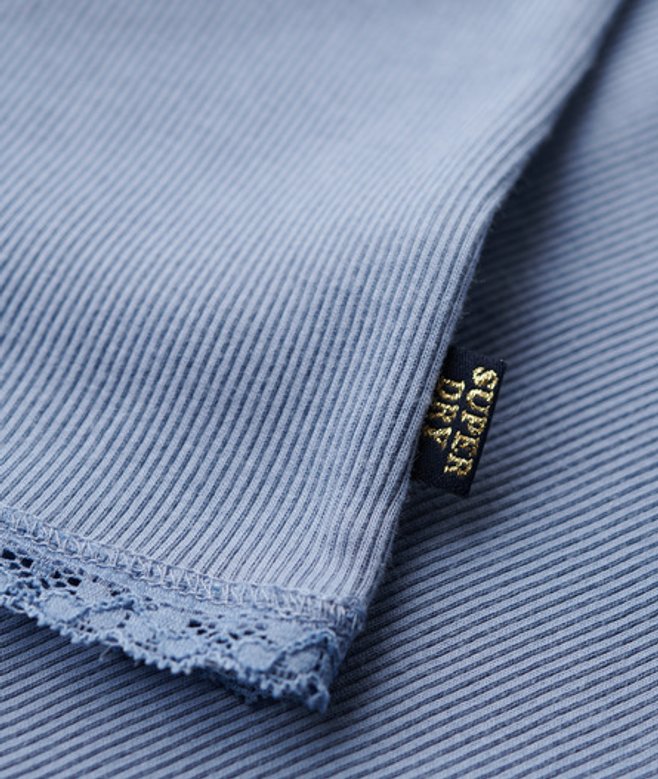 Slimfit - de nauw aansluitende pasvorm zorgt voor een getailleerd silhouet Verstelbare spaghettibandjes Geribd materiaal Kanten boorden Geborduurd Superdry-logo Kenmerkend Superdry-label UK 6-8, VS 2-4, EU 34-36 VK 10-12, VS 6-8, EU 38-40 VK 14-16, VS 10-12, EU 42-44