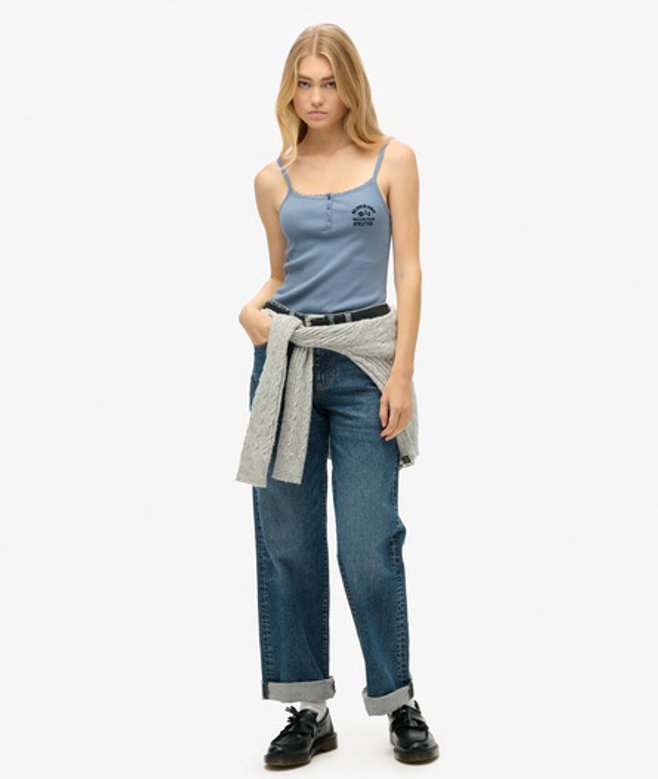 Superdry Athletic Essentials Button Down Cami Top Lichtblauw