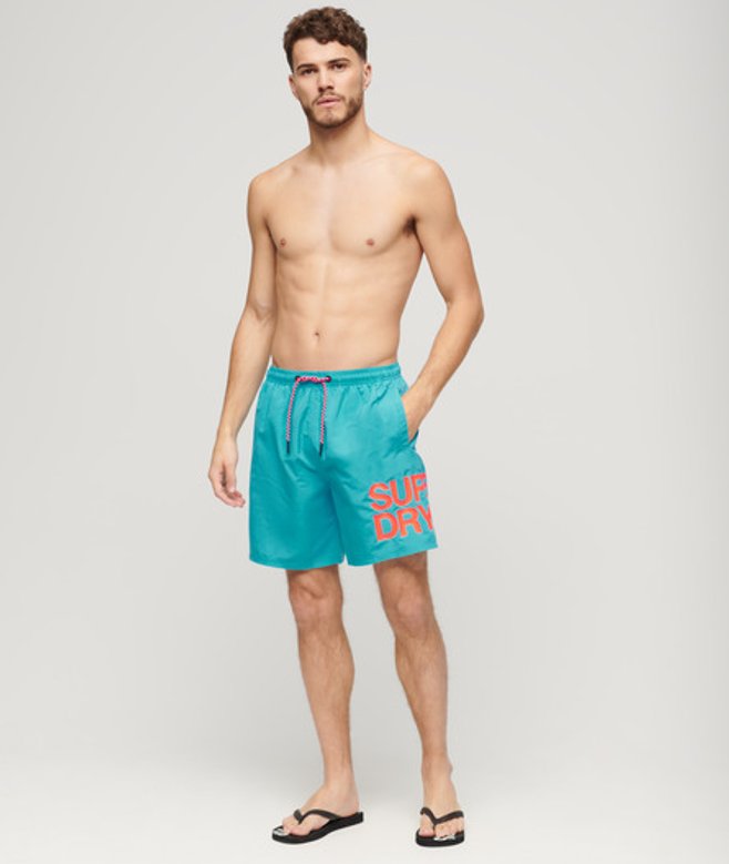 Superdry Gerecyclede Sportswear Zwemshort met Logo - 43 cm Blauw