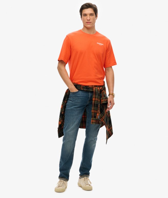 Losse pasvorm - cool en comfortabel komen samen in een stijlvolle losse pasvorm die je gewoon moet hebben Ronde hals Korte mouwen Print op de borst Logolabel op de zijnaad