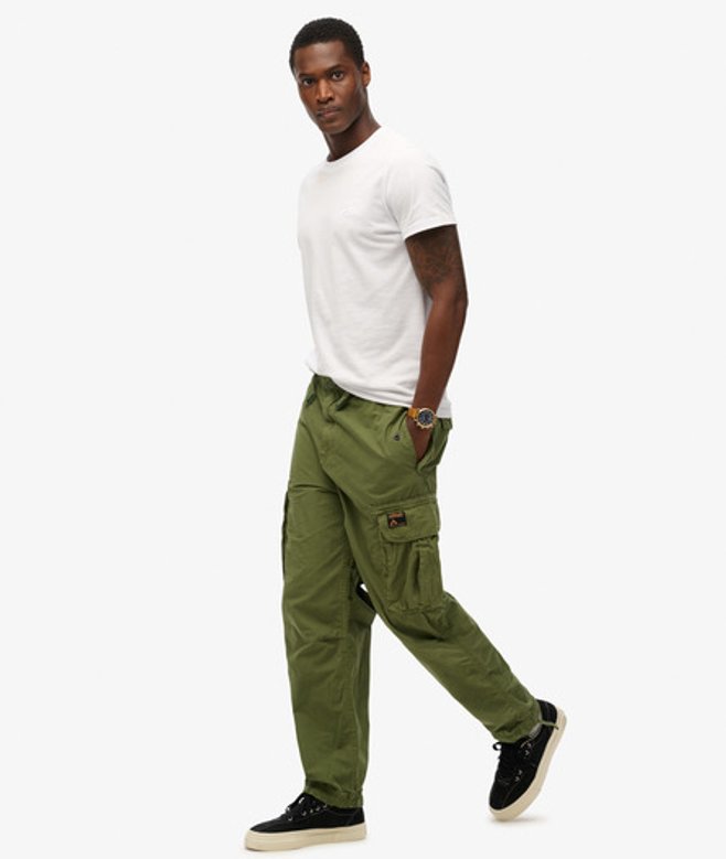 Elastische tailleband met elastisch trekkoord Knoopsluiting met ritssluiting Ontwerp met zes zakken Plooien op de knieën Manchetten met trekkoord Verstevigd zitvlak Kenmerkend Superdry-label