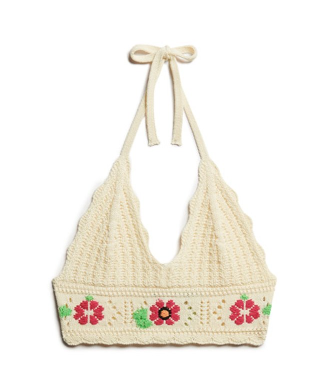 Superdry Gehaakte Bralette met Bloemen Crème