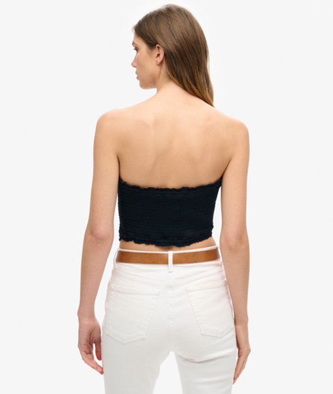 Slimfit - de nauw aansluitende pasvorm zorgt voor een getailleerd silhouet Strapless Met smokwerk Kort model Gerimpelde zoom Metalen Superdry-label
