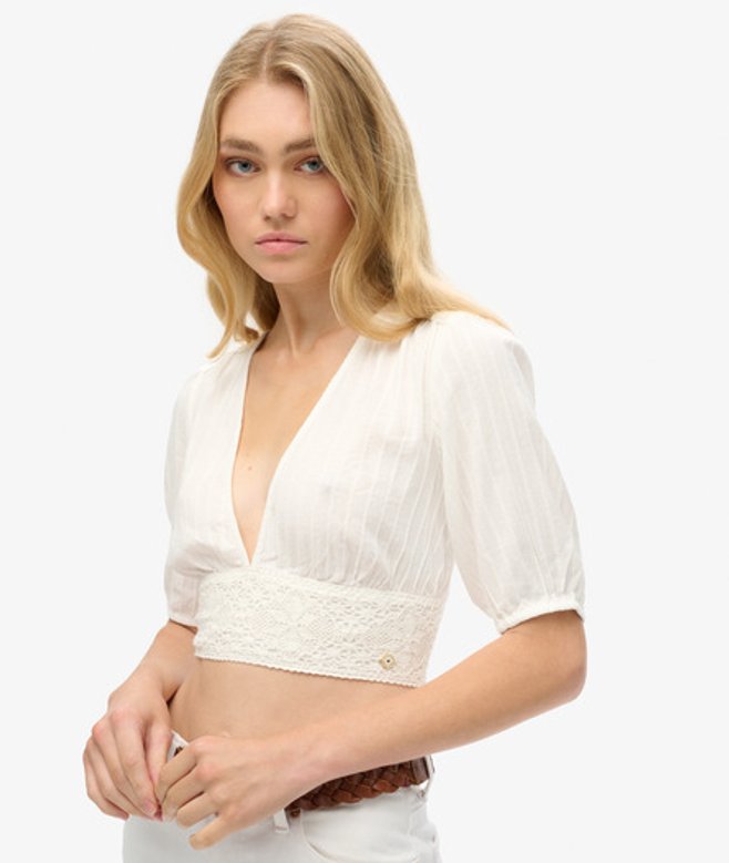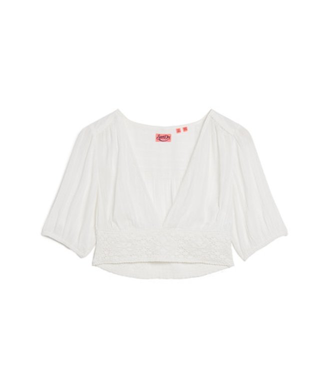 Superdry Ibiza top met Korte Mouwen en Kanten Rand Wit