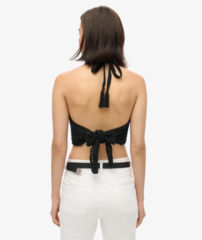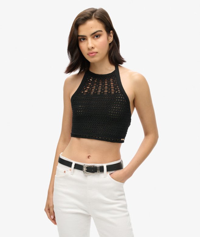 Superdry Kort Gehaakt Haltertopje Zwart | ricciano NEDERLAND