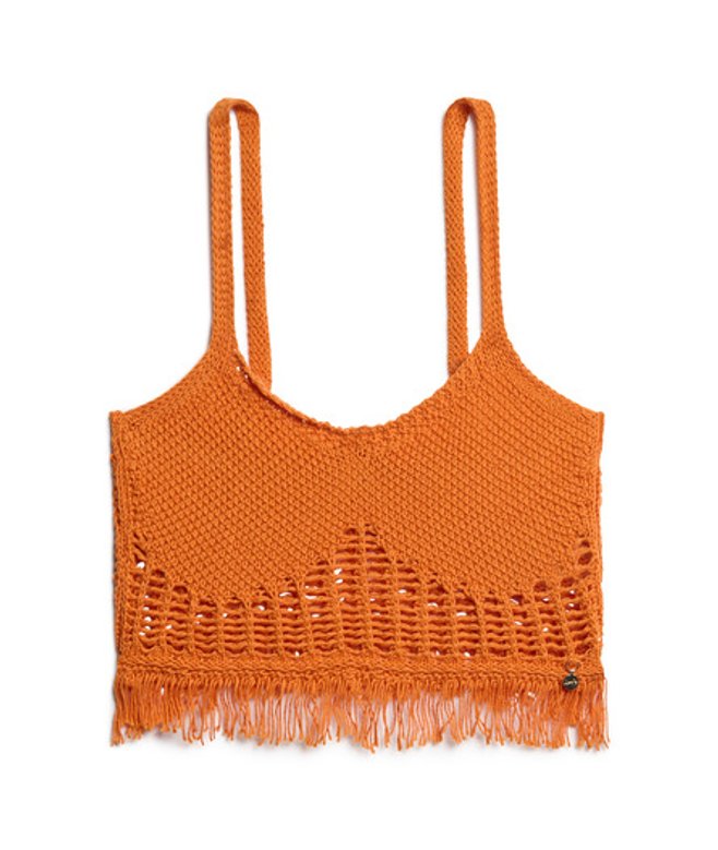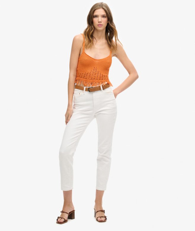 Slimfit - de nauw aansluitende pasvorm zorgt voor een getailleerd silhouet Gehaakte top met franje en een diepe halslijn Spaghettibandjes Ontworpen om samen met jou door de zomer te reizen.
