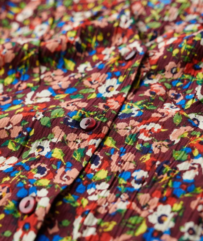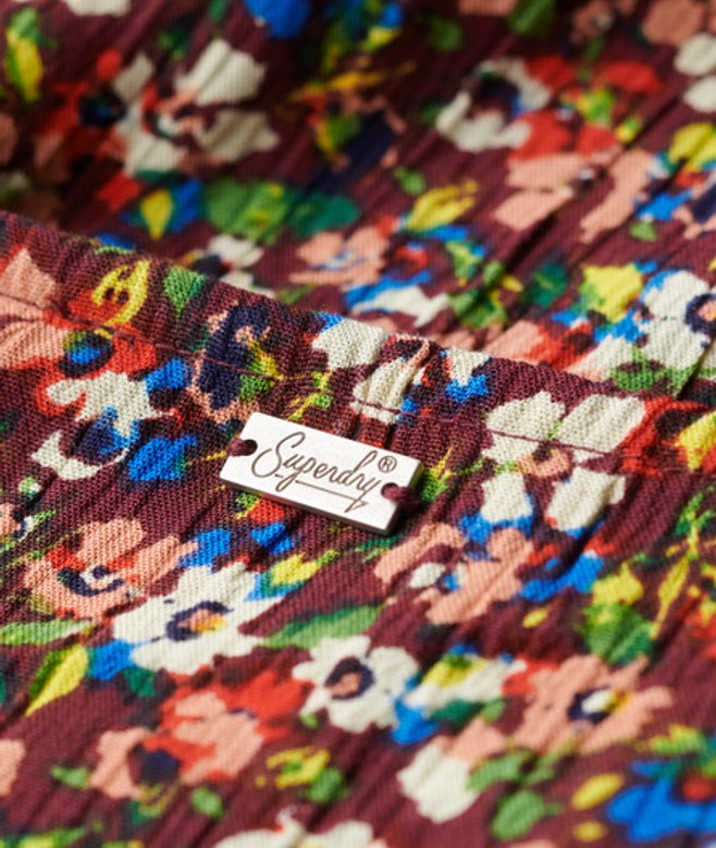 Superdry Bedrukte Midi-teadress met Knopen en Korte Mouwen Bruin
