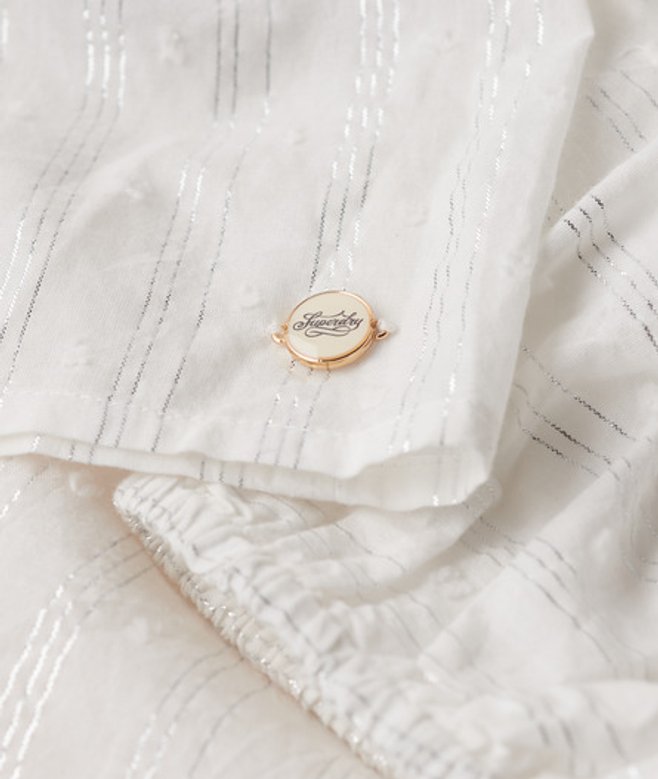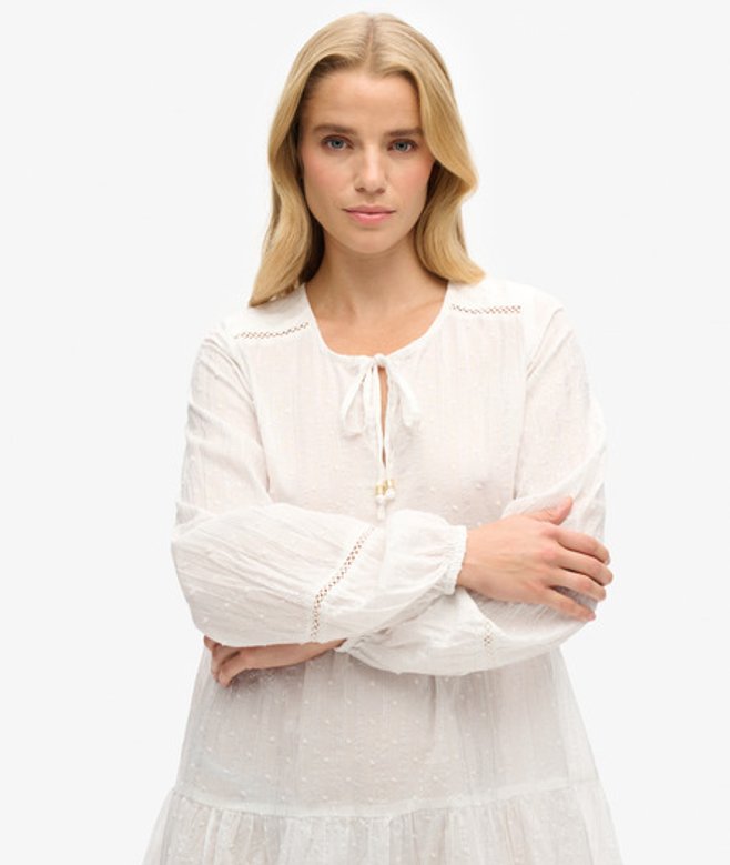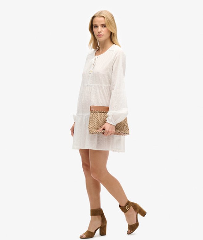 Superdry Ibiza Gelaagde en Fonkelende Mini-jurk met Lange Mouwen Wit