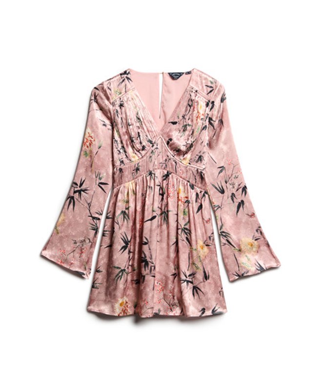 Superdry Jacquard Mini-jurk met Wijduitlopende Mouwen Roze