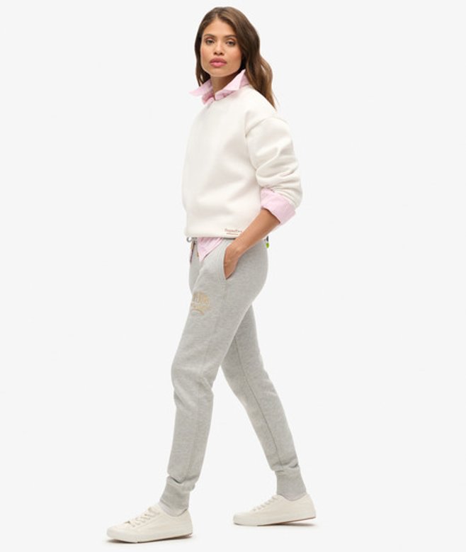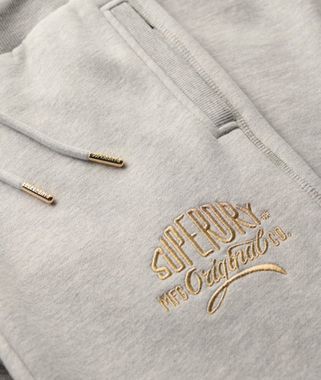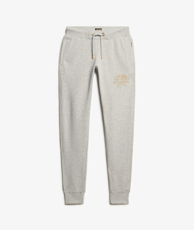 Superdry Luxe Slimfit Joggingbroek met Metallic Logo Lichtgrijs