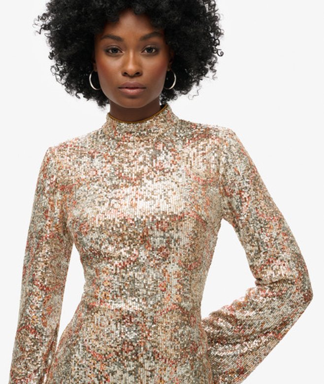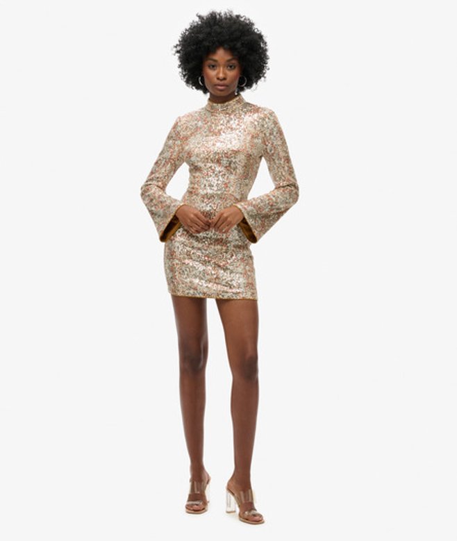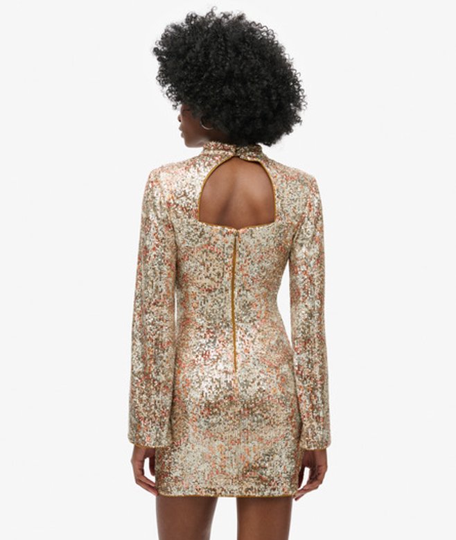 Superdry Mini-jurk met Print, Pailletten en Lange Mouwen Goud