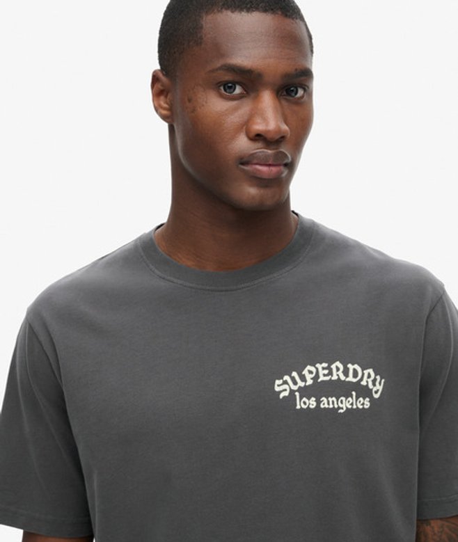 Superdry Tattoo T-shirt met Losse Pasvorm en Print op de Achterkant Donkergrijs