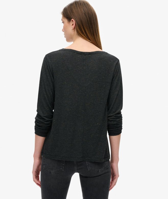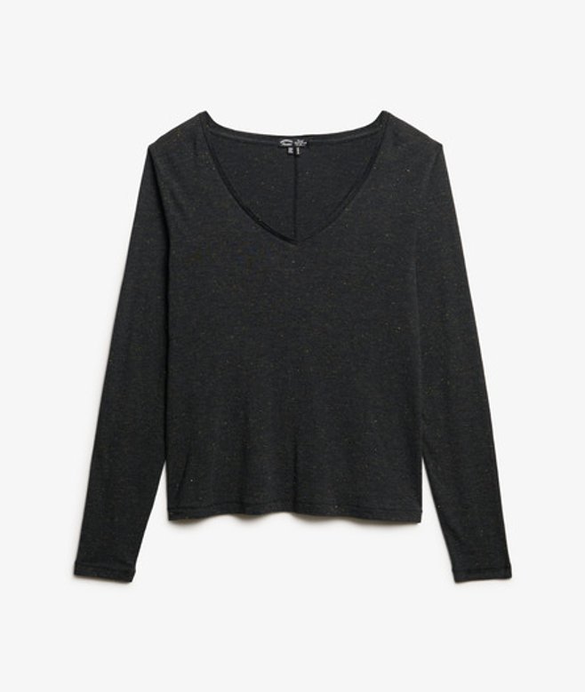 Superdry Jersey top met V-hals en Lange Mouwen Zwart