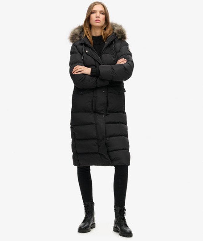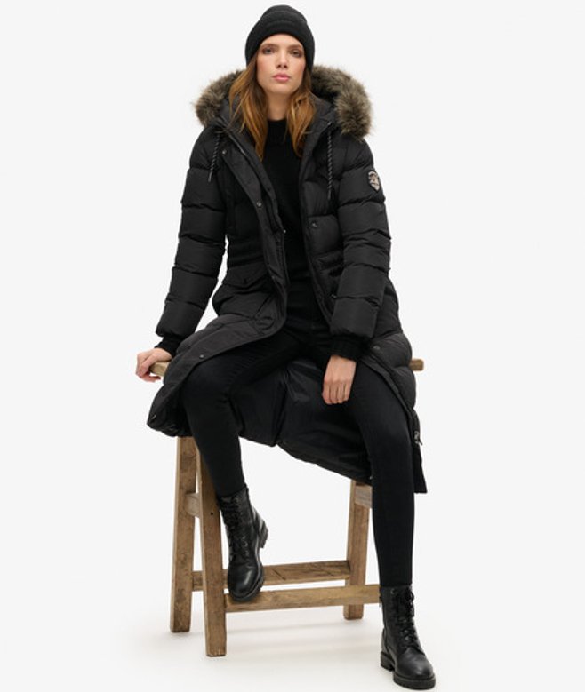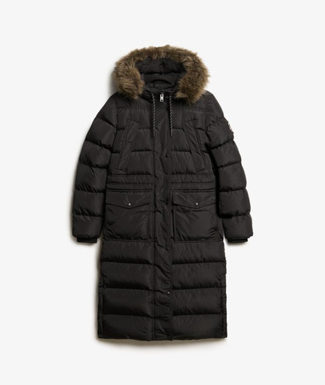 Blijf de hele dag warm en trendy met onze lange Everest-jas met een afneembare rand van imitatiebont en een overvloed aan handige zakken.