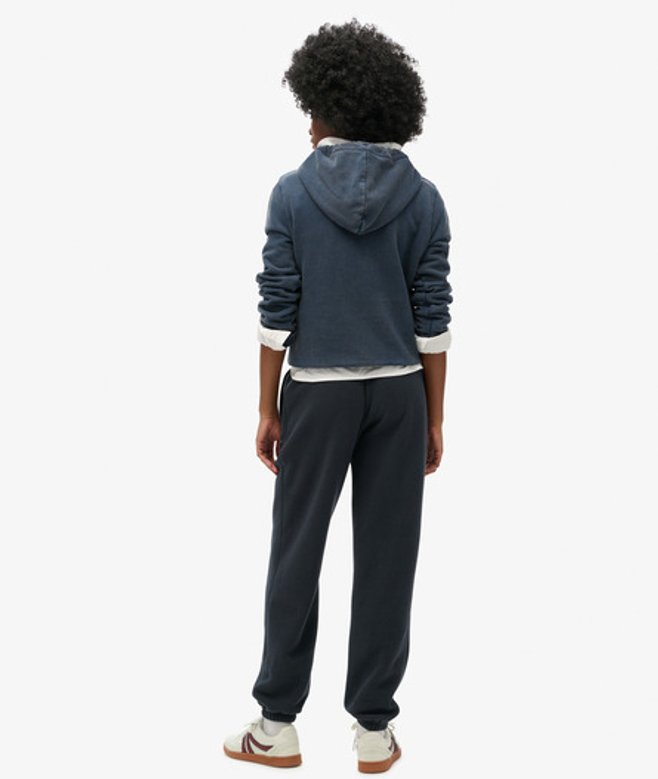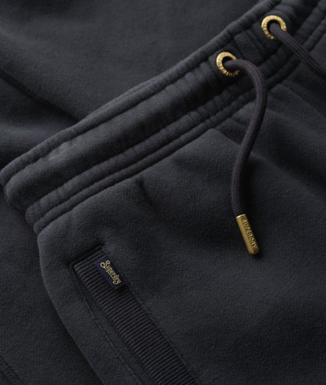 Kies je gebruikelijke maat Enkelboorden Elastische taille met trekkoord Geribde boorden Twee zijzakken Geborstelde voering Geborduurd Superdry-logo Zak met logolabel Binnenbeenlengte 75,5 cm