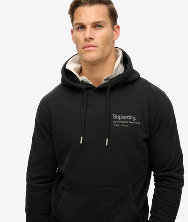 Superdry Core Logo City Hoodie met Losse Pasvorm Zwart