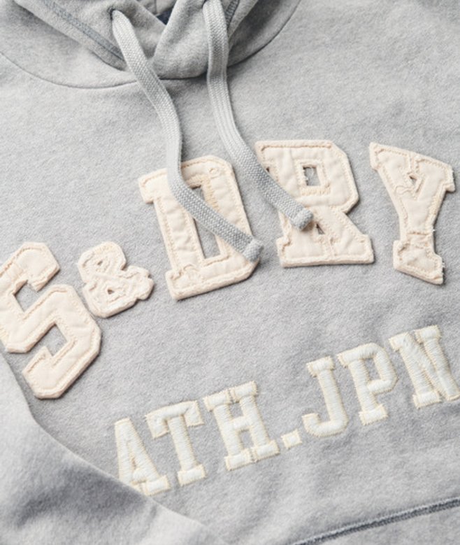 De grote, geborduurde afbeelding heeft een licht verweerde afwerking voor een retrolook die klassiek Superdry is.