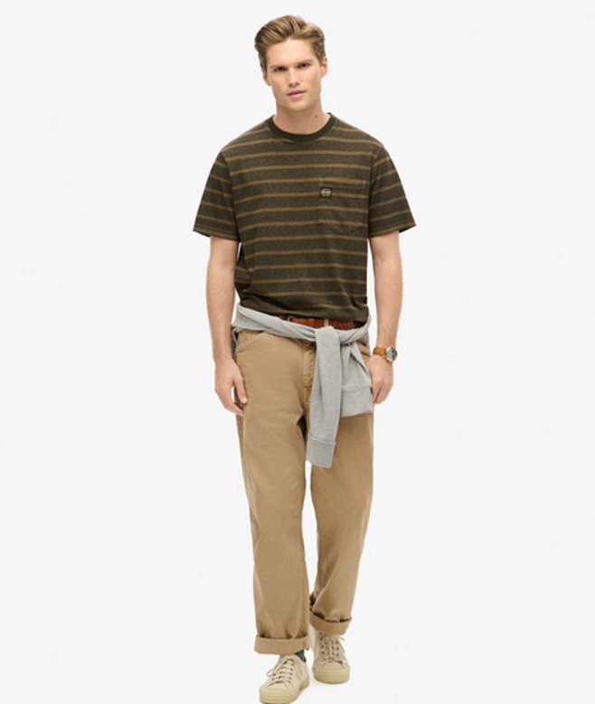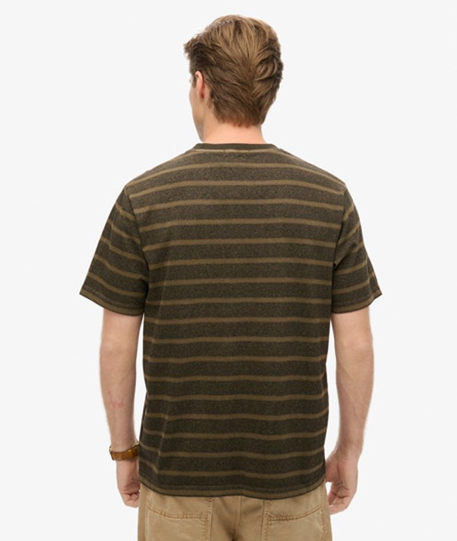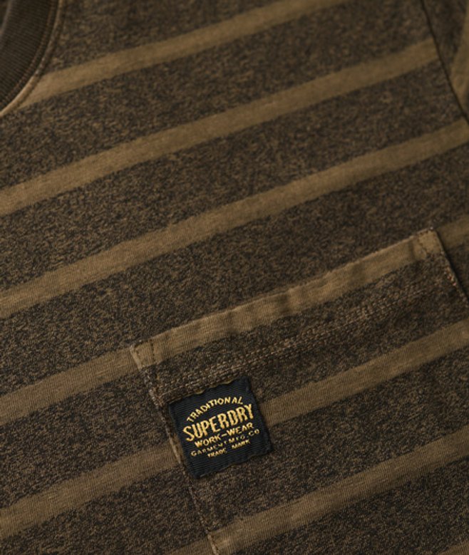 Superdry Getextureerd Gestreept T-shirt met Borstzak Groen