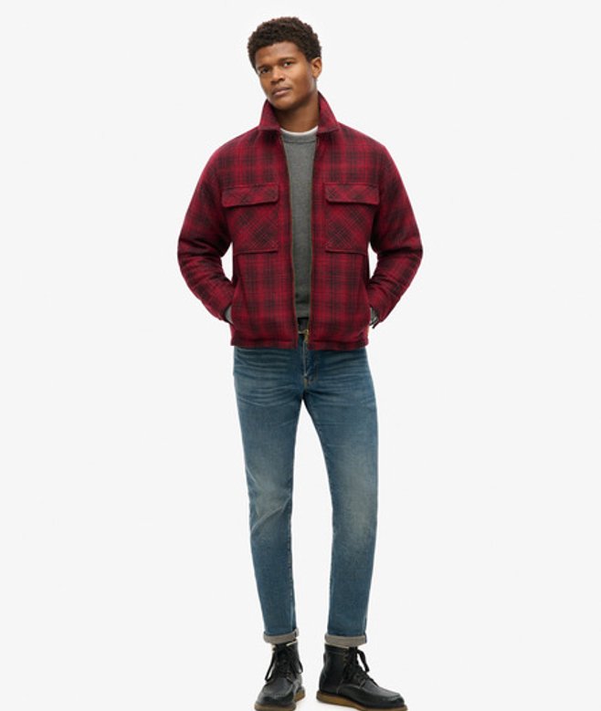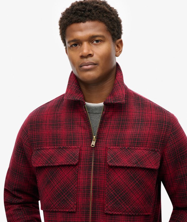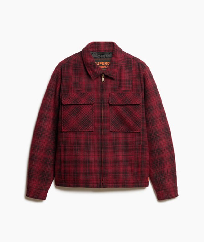 Superdry Surplus Geruit Wollen Overshirt met Rits Rood