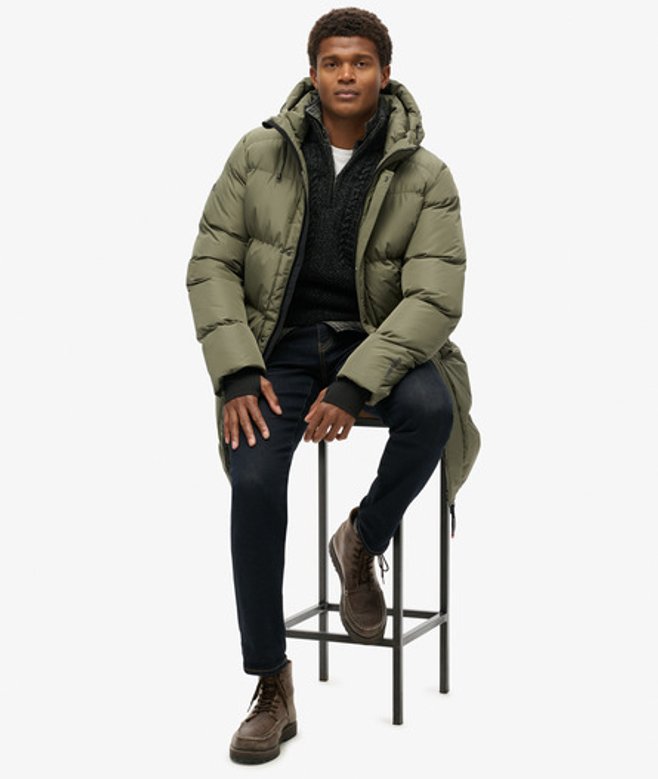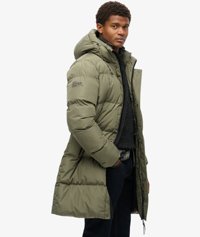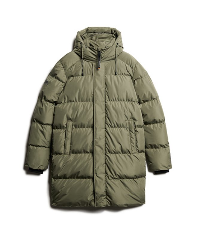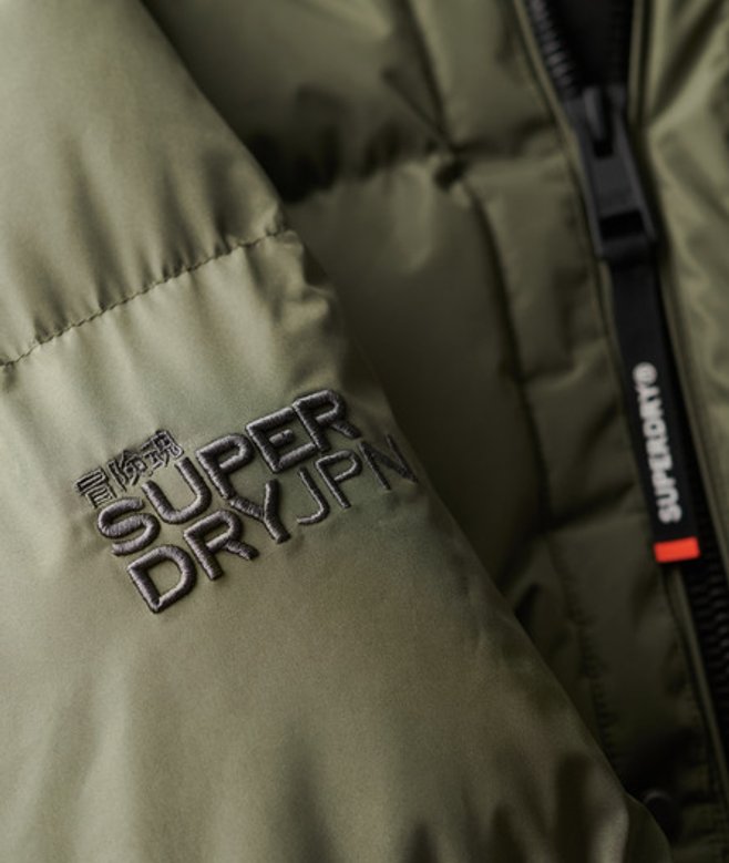Kies je gebruikelijke maat Capuchon met trekkoord Rits- en drukknoopsluiting Twee buitenzakken met ritssluiting Eén binnenzak van mesh Halflang Geborduurd Superdry-logo op manchet en mouw