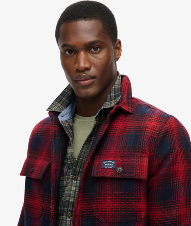Laat je zien in de rustieke stijl van Americana met het wollen geruit overshirt met fleece voering.