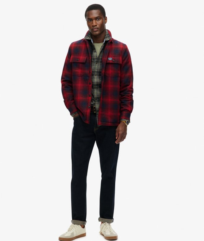 Superdry Wollen Geruit Overshirt met Fleece Voering Rood