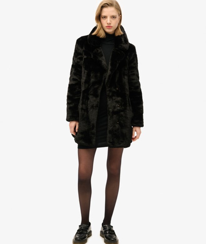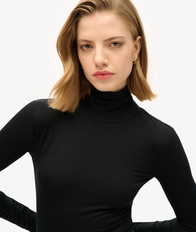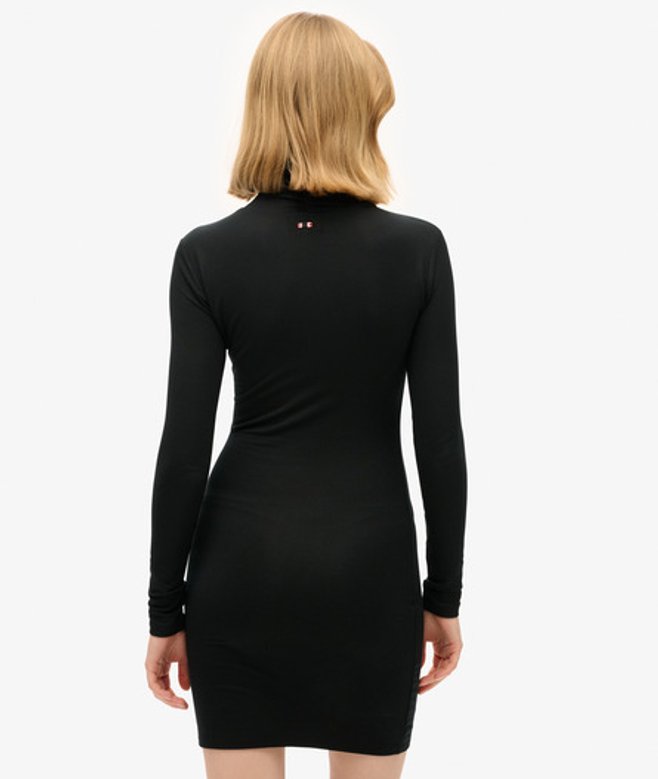 Superdry Mini-jurk met Lange Mouwen en Hoge Halslijn Zwart