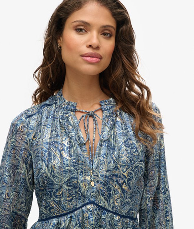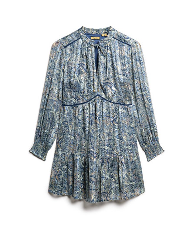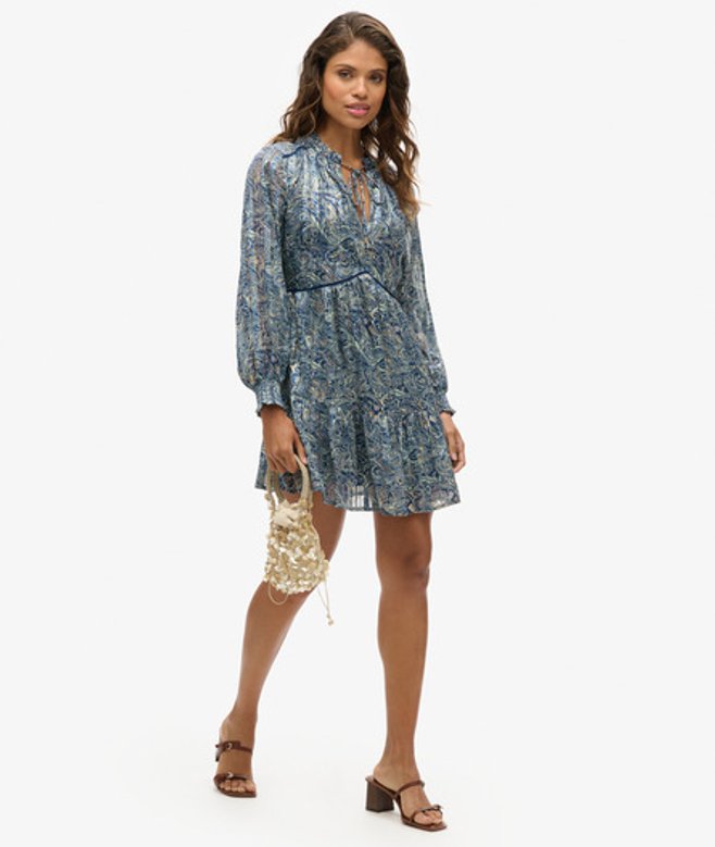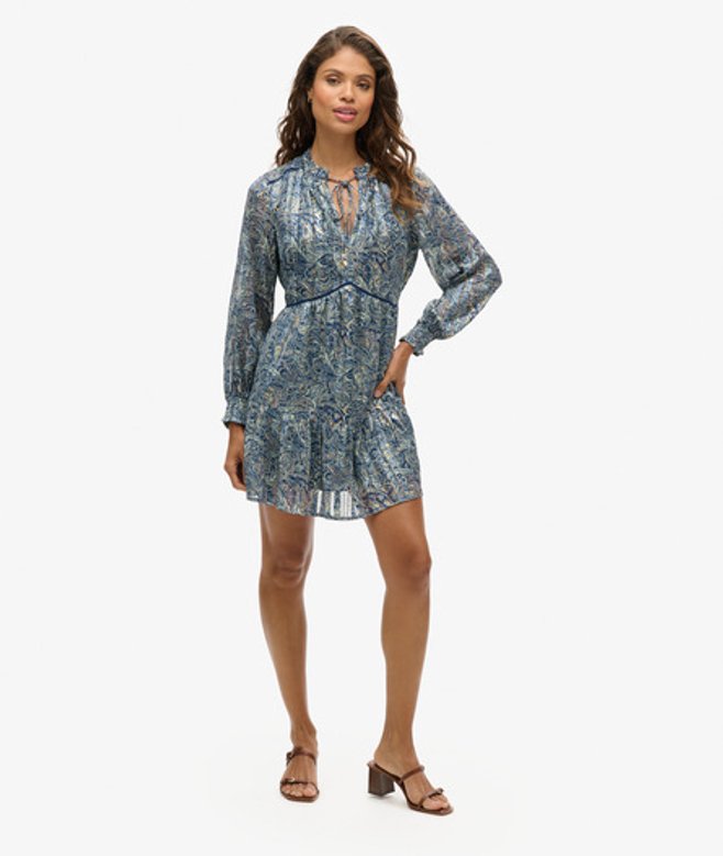 Superdry Metallic Mini-jurk met Print en Lange Mouwen Blauw