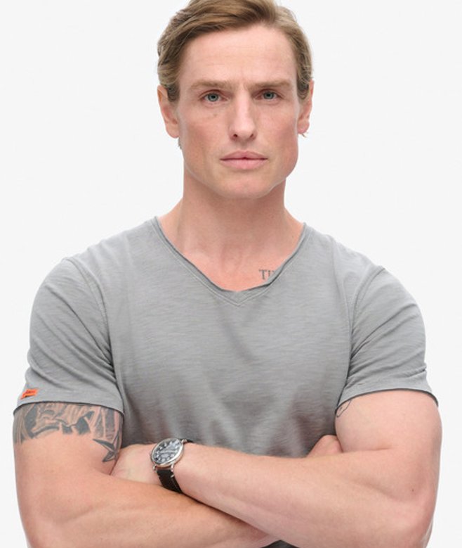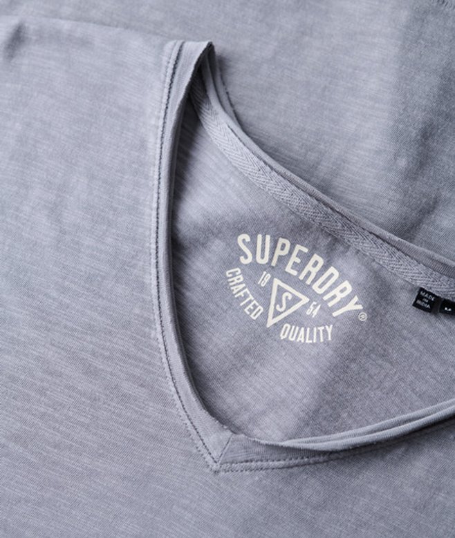 Superdry Raw Edge T-shirt van Slubgaren met V-hals Grijs