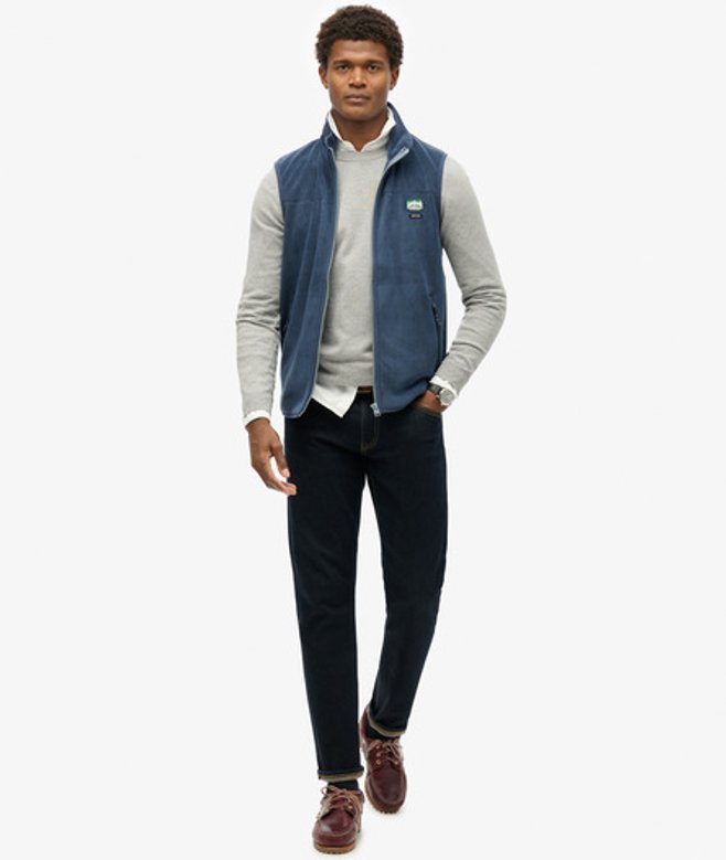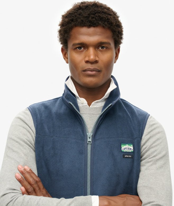 Kies je gebruikelijke maat Mouwloos ontwerp met rits gemaakt van zachte fleece Hoge kraag met fleecevoering en geborduurd logo aan de buitenkant Twee zijzakken met rits Geborduurd Superdry-label op de borst Het fleecemateriaal van de Active-bodywarmer van fleece is vakkundig vervaardigd in een klassiek stijlvol silhouet.
