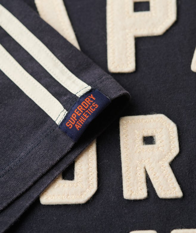 Kies je gebruikelijke maat Geribde ronde hals Korte mouwen Superdry-logo Gestreepte mouwen Kenmerkend Superdry-label