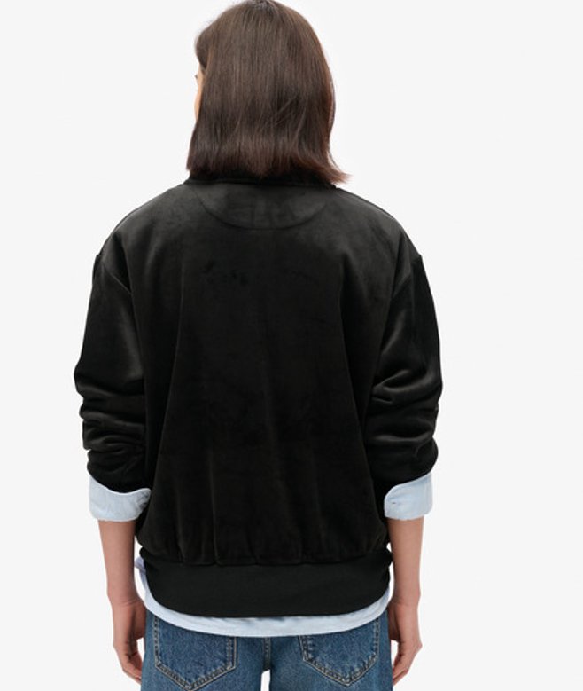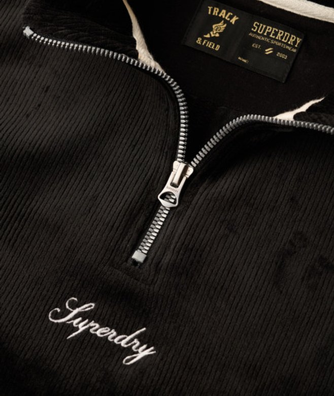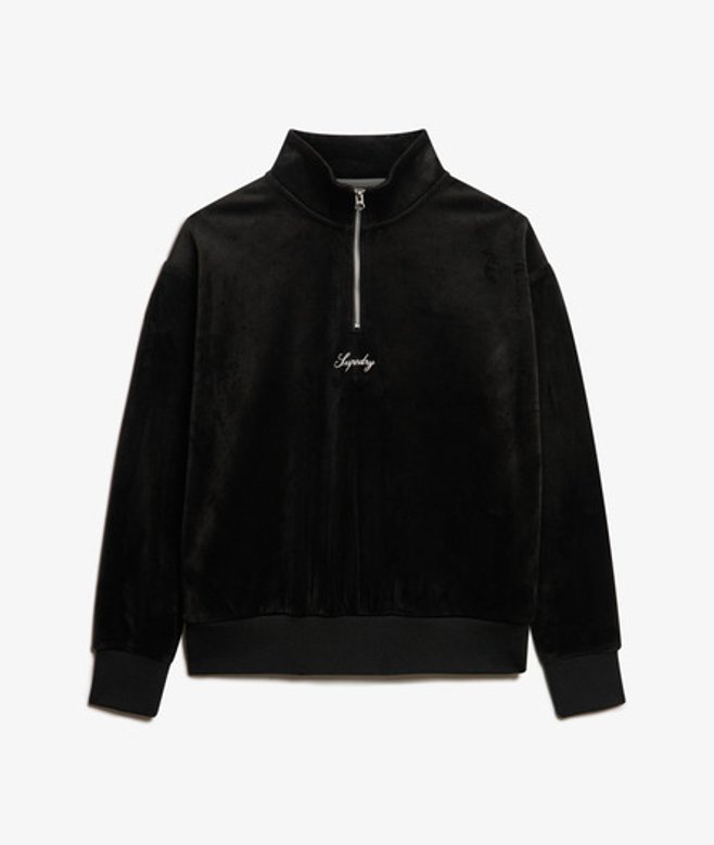 Superdry Country Club Velours Trui met Halve Rits Zwart