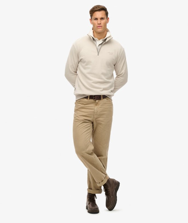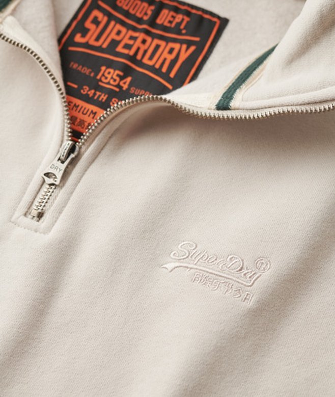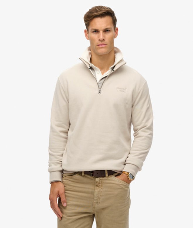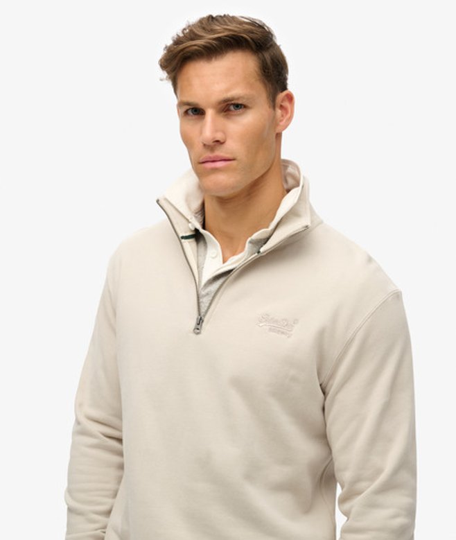 Superdry Essential Logo Sweatshirt met Halve Rits Beige