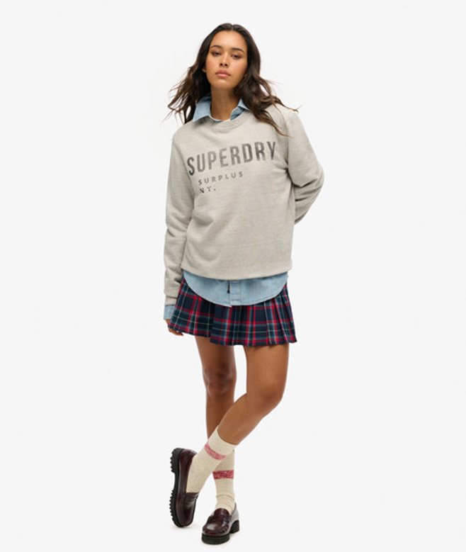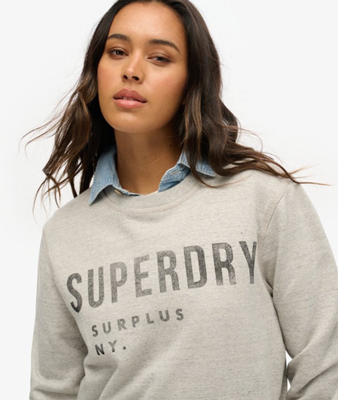 Superdry Oversized Surplus Sweatshirt met Ronde Hals en Print Grijs