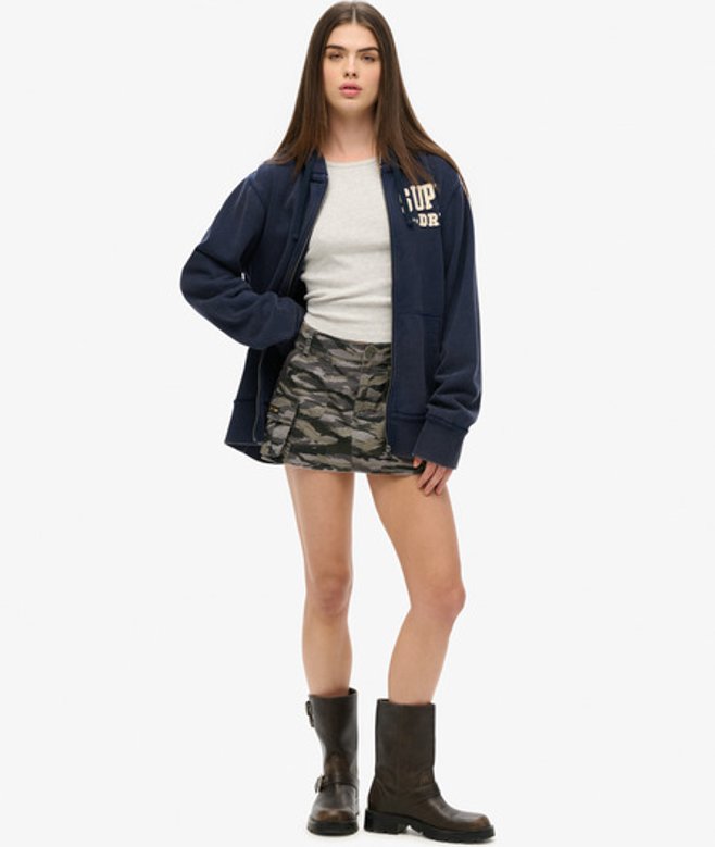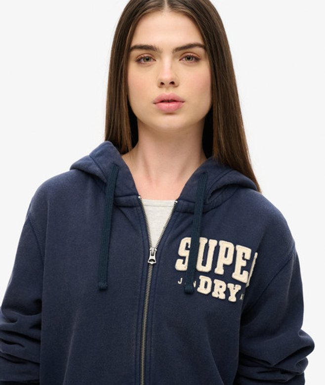 Superdry Oversized Vintage Athletic Hoodie met Rits Blauw