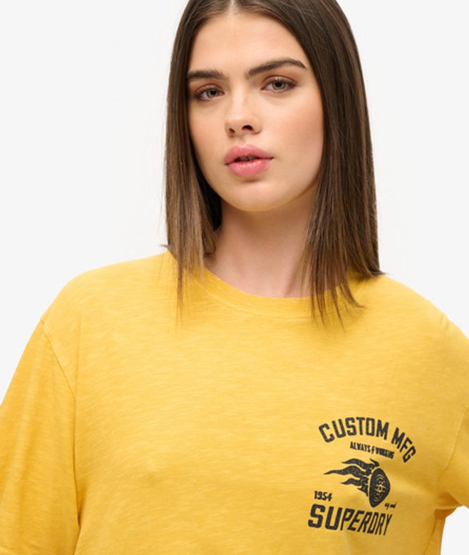 De vintage vibe van het T-shirt komt door de craquelé print die na verloop van tijd mooier wordt.