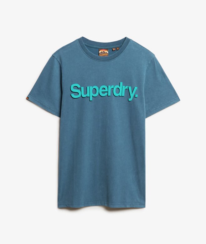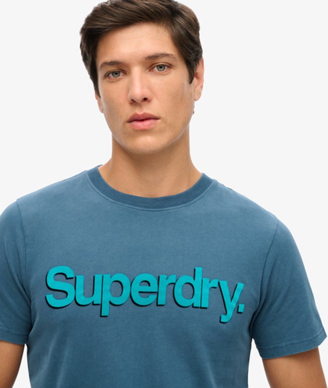 Kies je gebruikelijke maat Geribde ronde hals met grafische tekst op de borst Ons zorgvuldig gemaakte Shadow-T-shirt met Core-logo, grafische tekst met textuur op de borst en een relaxte pasvorm, ademt het Superdry DNA.