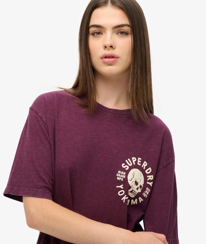 De vintage vibe van het T-shirt komt door de craquelé print die na verloop van tijd mooier wordt.