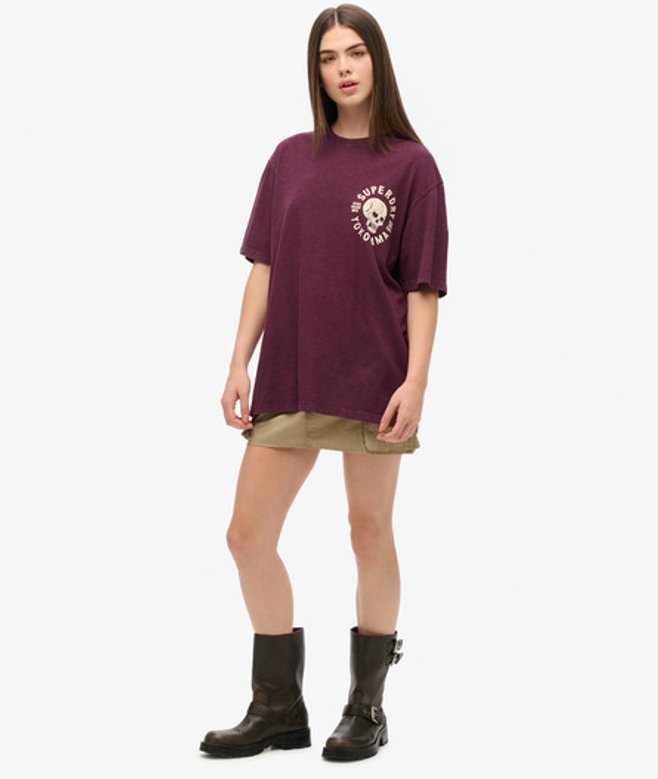 L-maten: VK 6-8, EU 34-36, VS 2-4 XL-maten: VK 10-12, EU 38-40, VS 6-8 XXL-maten: VK 14-16, EU 42-44, VS 10-12 Geribde, ronde halslijn en korte mouwen Craquelé print op de borst en ingenaaid label in de zijnaad Dit seizoen geven we je collectie een edgy vibe met ons losvallend biker-T-shirt.