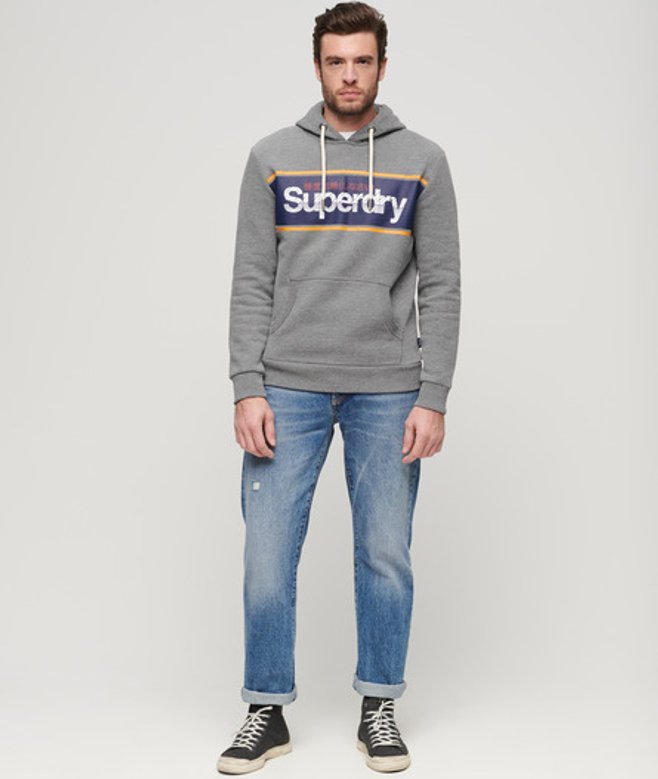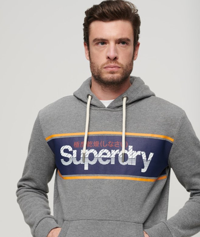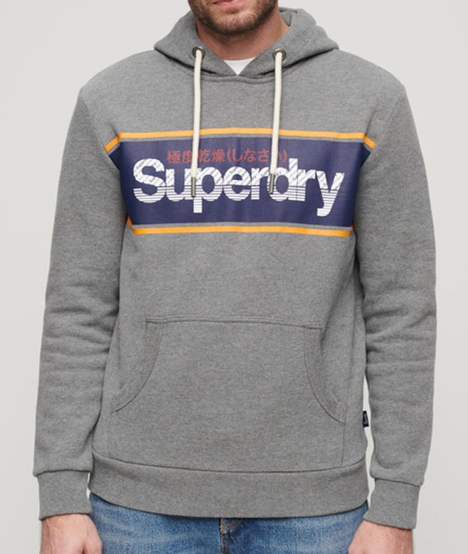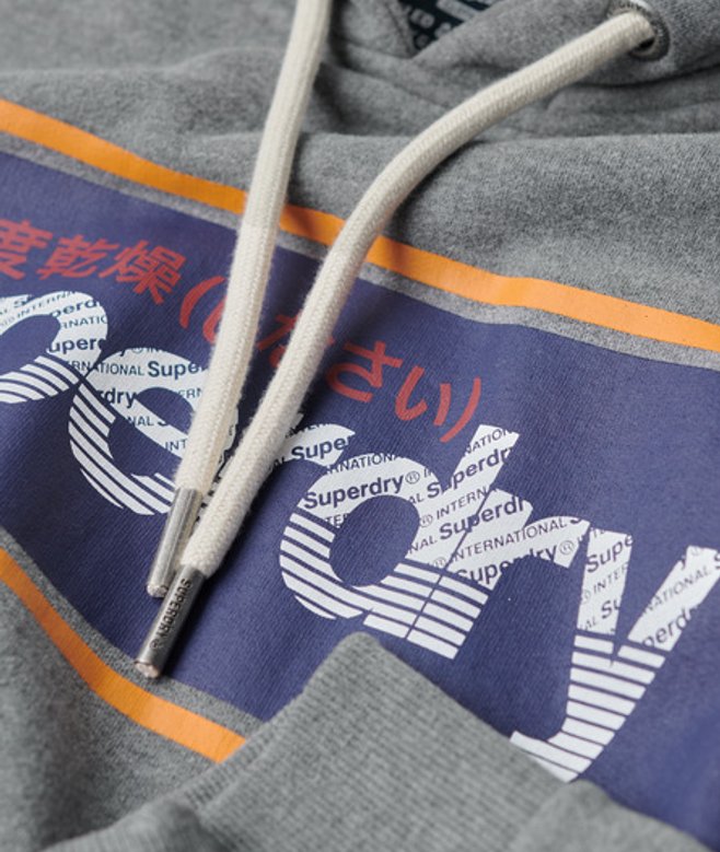 Kies je gebruikelijke maat Capuchon met trekkoord Geribde boorden en zoom Voorzak Superdry-afbeelding Superdry-label