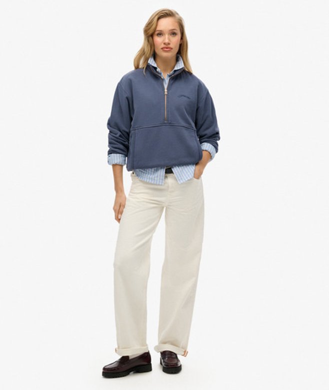 Superdry Essential Oversized Sweatshirt met Halve Rits en Logo Blauw