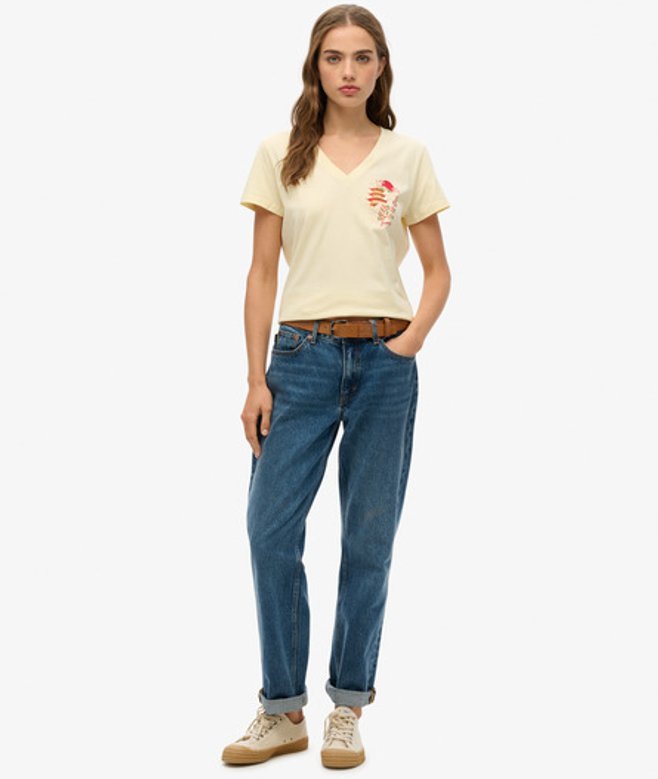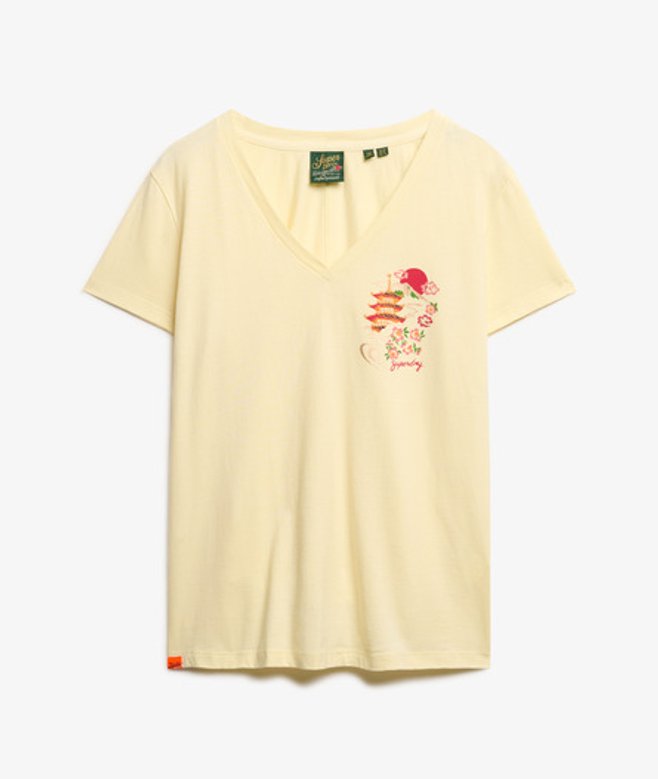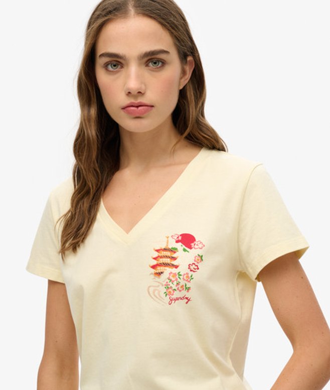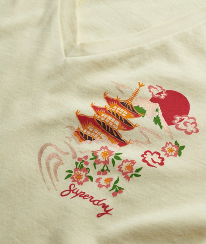 Superdry Suika Metallic Relaxed T-shirt met V-hals Crème