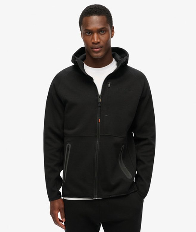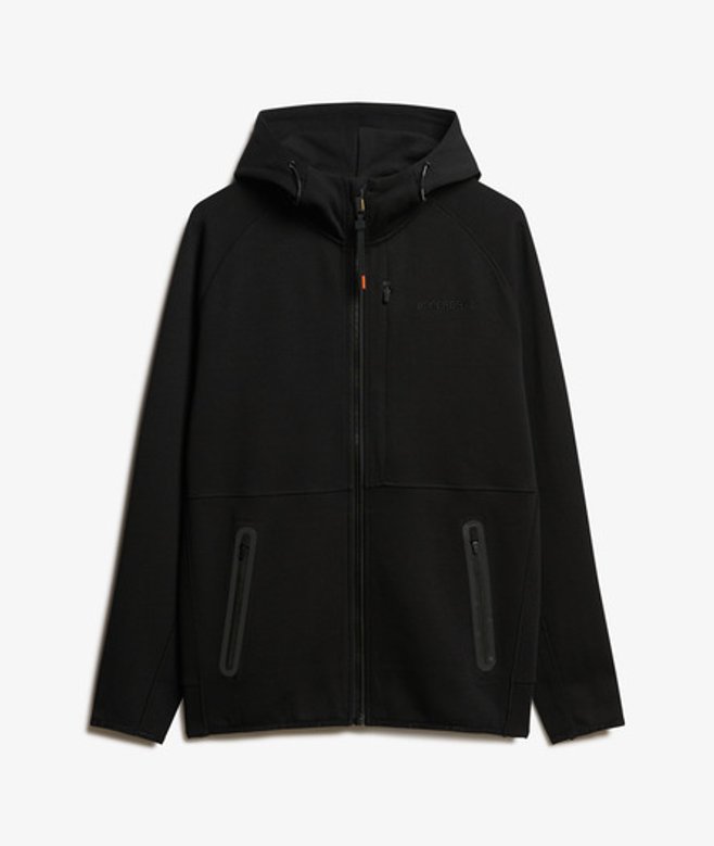 Superdry Tech Hoodie met Logo, Rits en Losse Pasvorm Zwart